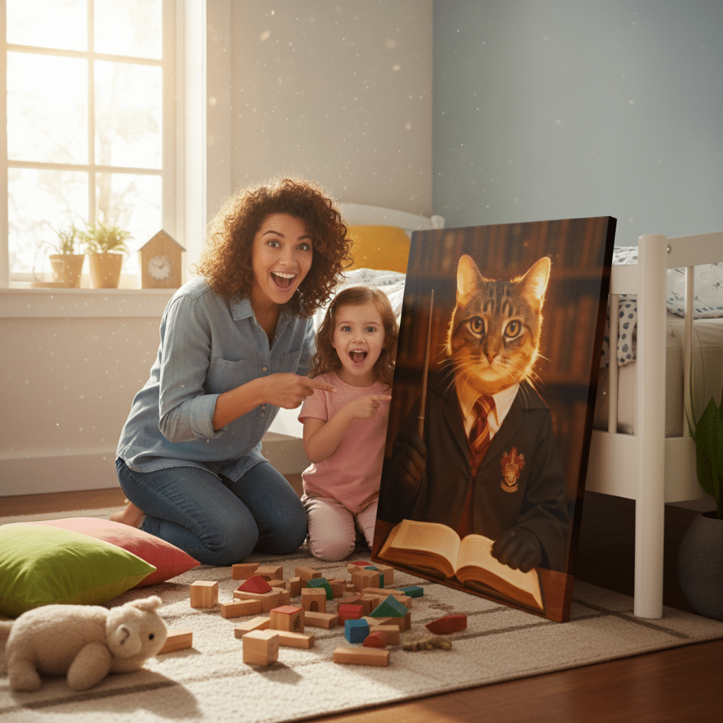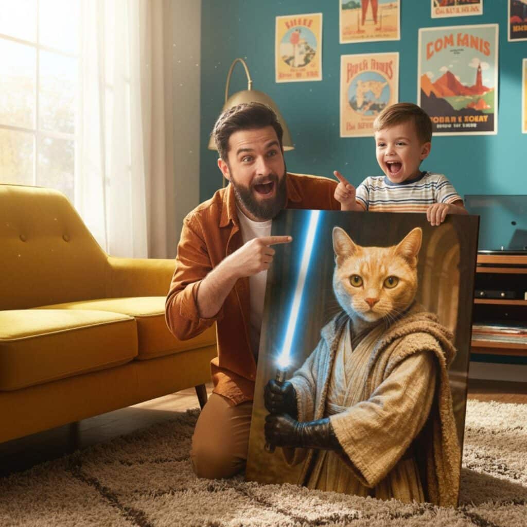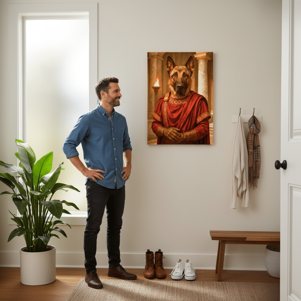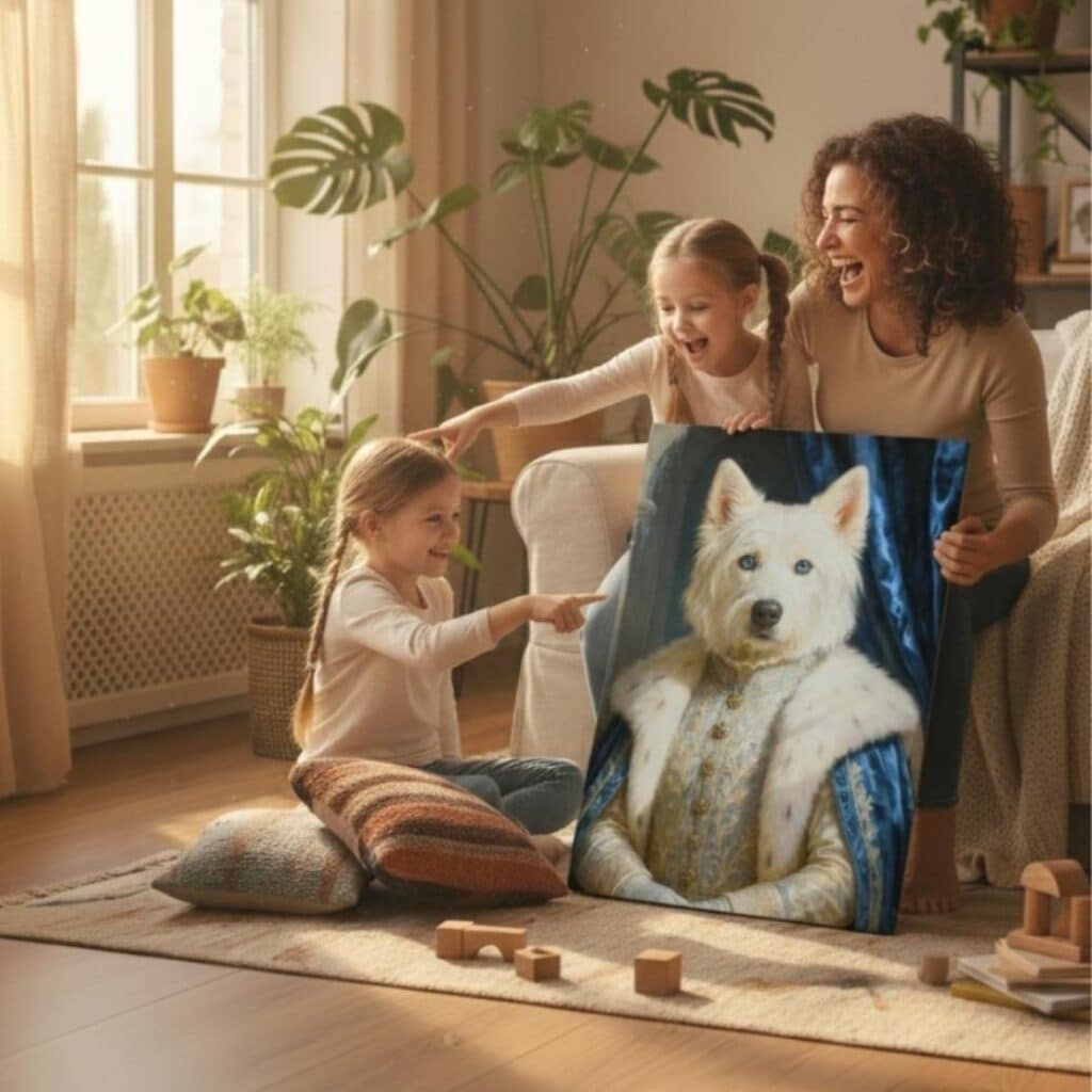 C’est simple : mon chien a plus de charisme en tableau qu’en vrai. On a éclaté de rire… puis on l’a encadré avec fierté 🙂